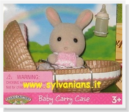 Set “Babies Ride and Play” Sylvanian Families Epoch. Questo set č uguale a quello distribuito in Nord America da “Int. Playthings” chiamato “Calico Critters Apple and Jake’s ride ‘n play”. Il nome del Bebč Coniglio č “Apple”, il Bebč Scoiattolo č “Jake”, la Mamma Coniglio si chiama “Gwyneth”. |