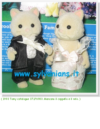 La “Coppia di sposi Gatti Crema” (“Cream Cats Wedding Couple”), Tilly e Dillon Fellini, era compreso con la casa di “Tomy” “Newlywed’s Cottage”.